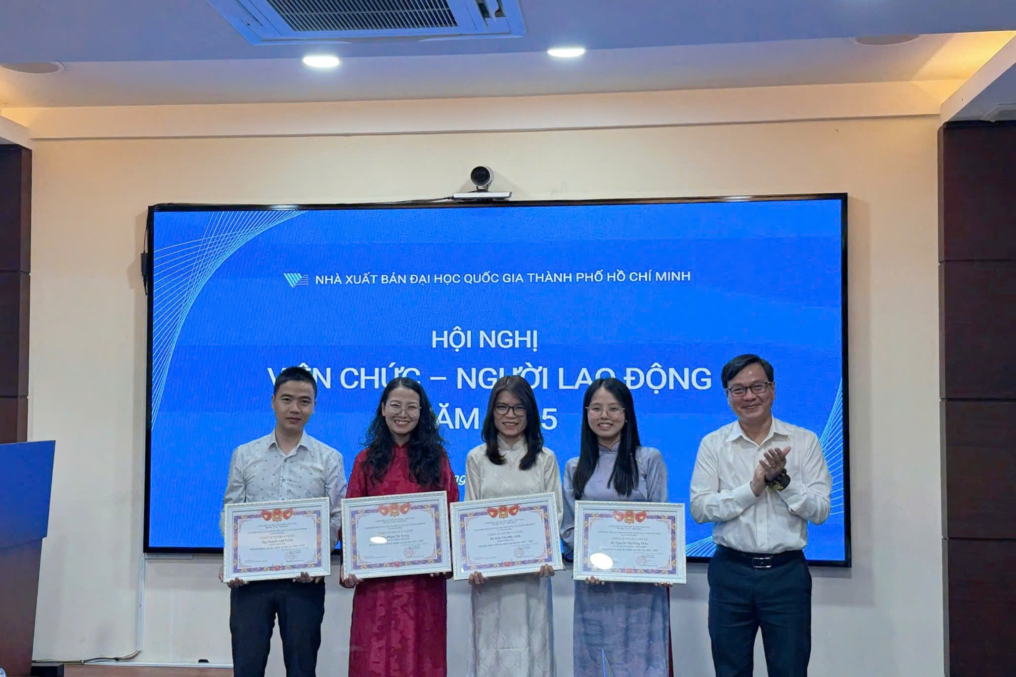 Dịp này, Hội nghị đã tuyên dương, khen thưởng các cá nhân đạt danh hiệu Chiến sĩ thi đua cơ sở và các tập thể lao động xuất sắc. Hội nghị khép lại trong không khí nghiêm túc, dân chủ và trách nhiệm, tạo nền tảng quan trọng cho hoạt động của Nhà xuất bản ĐHQG-HCM trong giai đoạn tới.